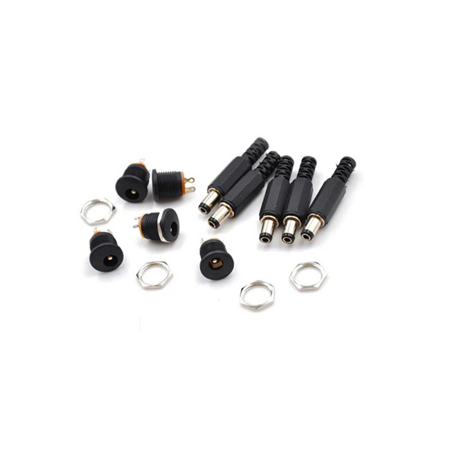 DC Power Connector 5.5*2.1 5.5*2.5 MM Plastic Male Plugs + Socket Female DC Power Jack Screw Nut Panel Mount Connector